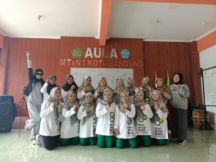 Guru-Guru MTs N 1 Kota Bandung mengikuti kegiatan senam bugar bersama yang dilaksanakan di aula madrasah, sebagai upaya menjaga kebugaran jasmani sekaligus meningkatkan semangat kerja. Kegiatan ini diikuti oleh pendidik dan tenaga kependidikan pada setiap hari selasa pukul 13.00 – Selesai.